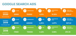 Infographics, like this one BoxCrush made for a client case study, help readers see results without reading much text. This image shows that after partnering with BoxCrush, the client’s Google Ads got more clicks and more conversions, at a lower cost-per-conversion.
