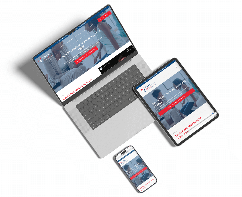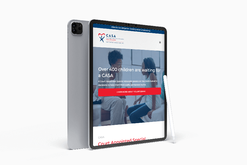 BoxCrush created a custom WordPress website design for East Central Indiana CASA that combined modern aesthetics with a strong, heartfelt message.