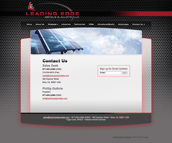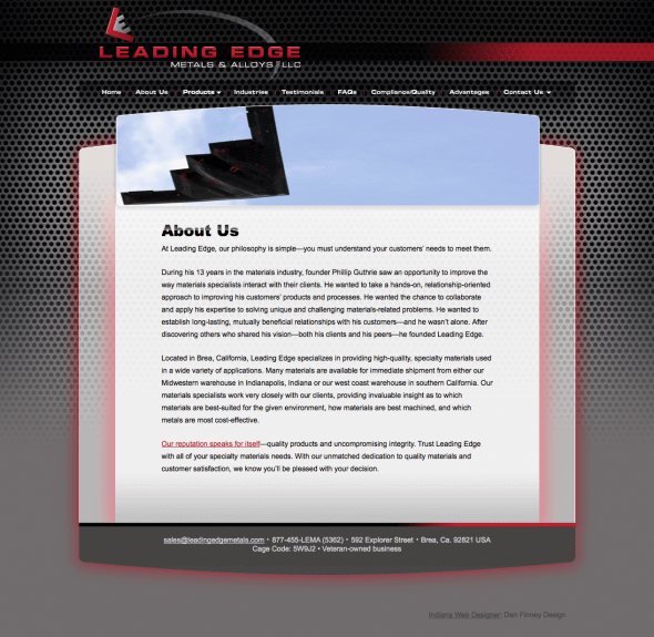 Leading Edge Metals & Alloys, a supplier of materials for an array of industries, wanted to reach out to the aerospace industry. BoxCrush delivered a bold, innovative logo and web design incorporating a stealth bomber.
