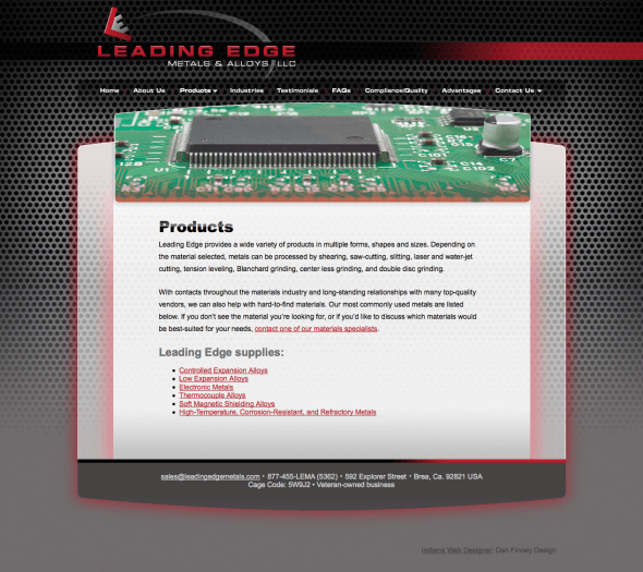 This supplier of metals and alloys for electronics, medical, oil and gas, and research fields requested a rebranded website design and logo incorporating elements of the aerospace and defense industry.