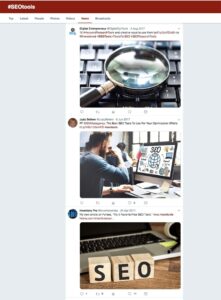 Hashtags allow users to group posts together so they can follow topics of interest. By searching hashtags, users can view conversations from multiple Twitter accounts in a single stream, like this search for #SEOtools: