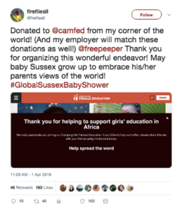 Comment on a Twitter Moment – Jump in and join the conversation when you see a post with a hashtag of interest. Fans of the British royals are sharing #GlobalSussexBabyShower. This tag was started to celebrate the birth of Prince Harry and Meghan Markle’s first child and raise money for some of the royal family’s favorite charities.